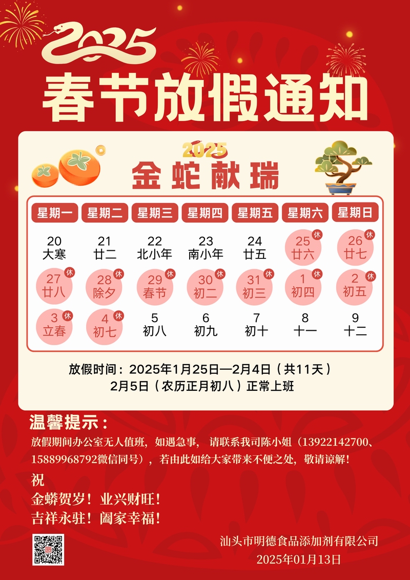 2025年春節(jié)假期通知,敬請(qǐng)留意